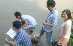 2013年9月12日吕氏贵宾会草莓员工萧山先锋河上游调查水样,参与保护水源地活动