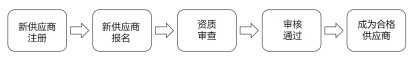 (3) 成为合格供应商:新供应商最终审核通过成为合格供应商之后,将按照合格供应商的标准参与后续投标及开展双方友好合作。